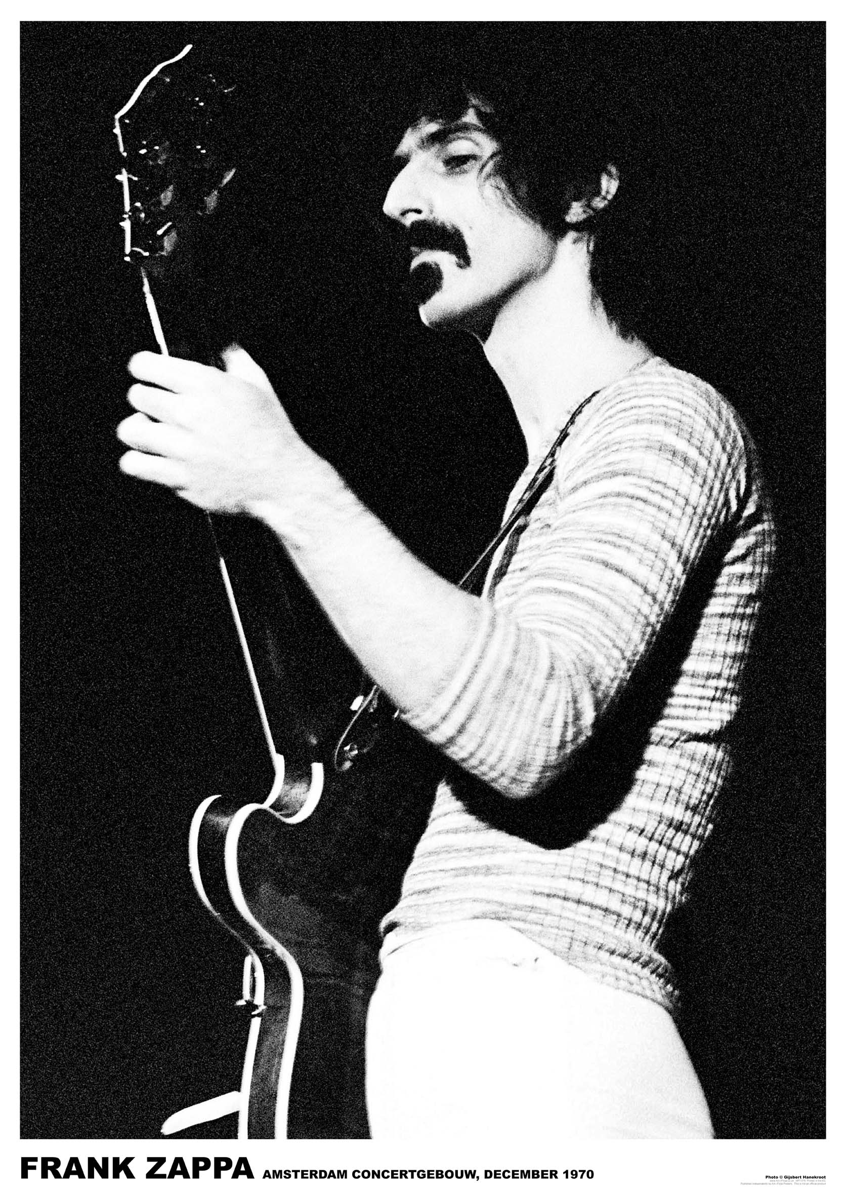 Black and white Frank Zappa poster capturing the great man live on stage in Amsterdam in December 1970.